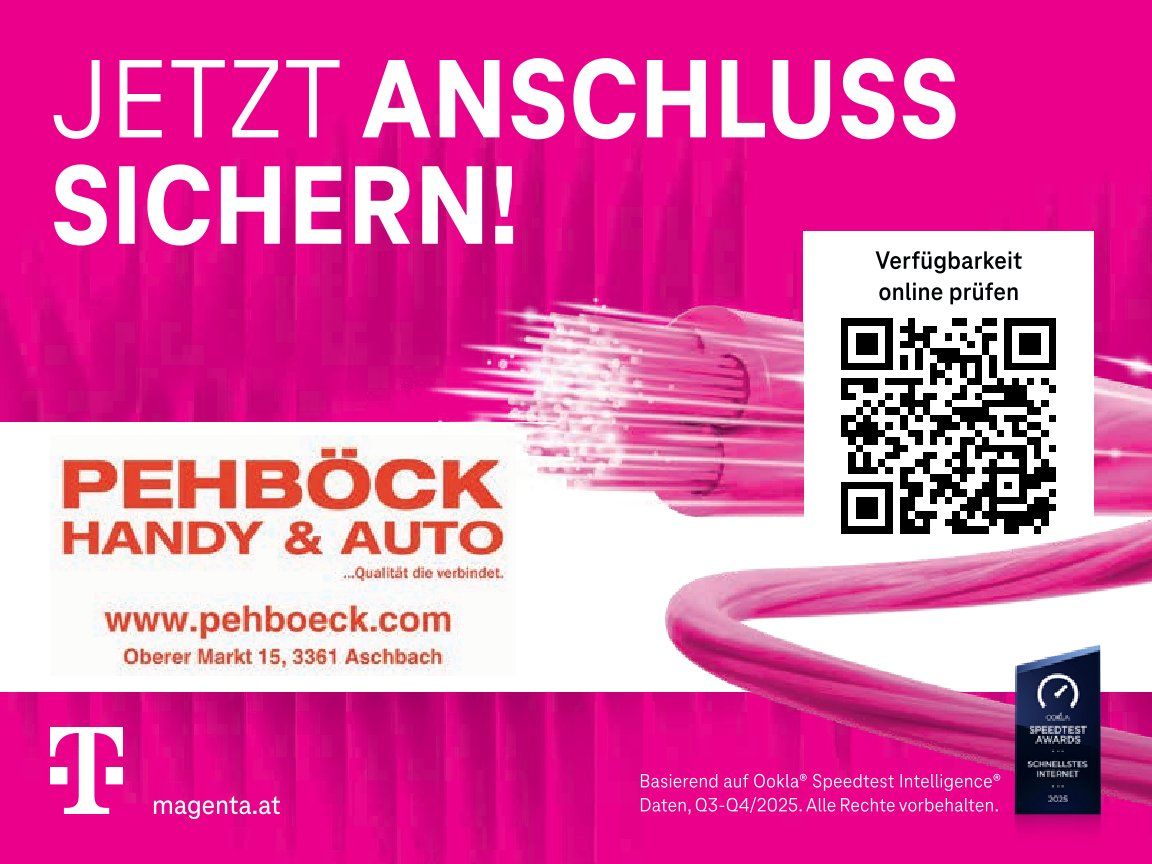 Tauchen Sie ein in die digitale Zukunft u. entdecken Sie, wie Magenta-Glasfaser Amstetten revolutioniert. Schnell, zuverlässig, leistungsstark! Frühbucherbonus bis spätestens 15.April 2026 bei uns sichern u. bis zu € 100.- sparen
